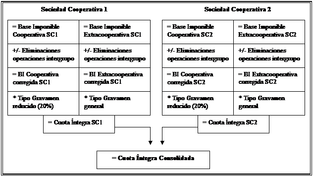 En segundo lugar, se conformarán dos bases imponibles, una cooperativa y otra extracooperativa, las cuales tributan a tipos de gravamen distintos, como incentivo a la realización de la actividad cooperativizada con los socios.